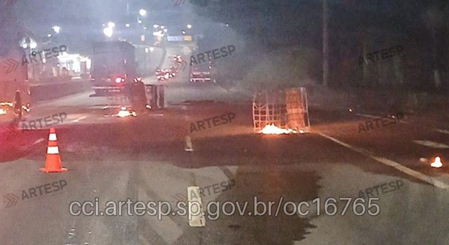 Na madrugada desta terça-feira (7), por volta das 4h20, dois caminhões circulavam pela Raposo Tavares, quando na altura do Km