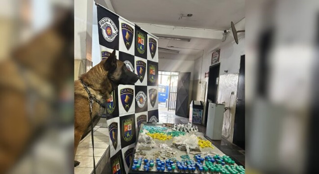 Policiais militares do Canil do 5º Baep – Batalhão de Ações Especiais de Polícia apreenderam aproximadamente 1,740 kg de drogas durante patrulhamento no Jardim Heneide, em Jandira, na região conhecida como “Favela do Cemitério”. A equipe avistou um homem que, ao notar a presença policial, tentou fugir e descartou uma sacola plástica. Ele se escondeu em um comércio local, onde foi localizado e abordado e confessou estar vendendo entorpecentes na área. Na sacola dispensada, os policiais encontraram 293 porções de maconha (1 kg), 580 porções de cocaína (636 g) e 104 porções de crack (104 g), além de três celulares e R$ 84,50 em dinheiro. O homem foi preso em flagrante e levado ao distrito policial da cidade, onde a autoridade de plantão confirmou a prisão pelo crime de tráfico de drogas.