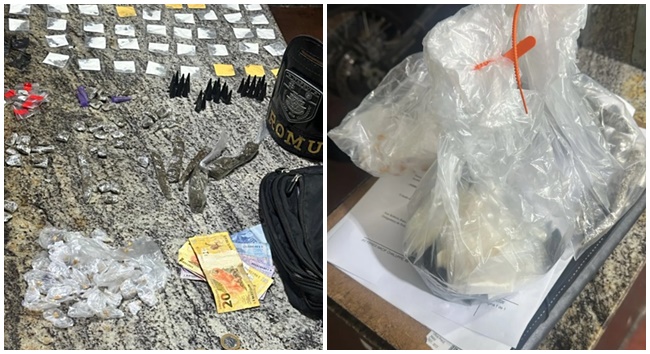 A Guarda Civil de Itapevi, por meio do grupamento especializado ROMU – Rondas Ostensivas Municipais, estava em patrulhamento preventivo pela Rua dos Acreanos, no Parque Suburbano, limite com Cotia, em um local já conhecido como ponto de venda de entorpecentes. Chegando ao local, os GCMs se depararam com um criminoso que, ao perceber a aproximação da viatura, fugiu portando uma bolsa tiracolo, entrando em área de vegetação. A equipe realizou uma perseguição e conseguiu localizar o bandido. Em busca pessoal, foram localizadas em sua posse diversas porções de drogas acondicionadas de forma típica para comercialização. Questionado, o traficante confessou que estava praticando o tráfico de drogas há aproximadamente três dias no local. Foi dada voz de prisão a ele e acabou conduzido à Delegacia de Itapevi, ficando encarcerado. Com o traficante haviam 52 porções de maconha, 117 de cocaína e 43 de crack, além de 92 reais oriundos da venda de drogas.