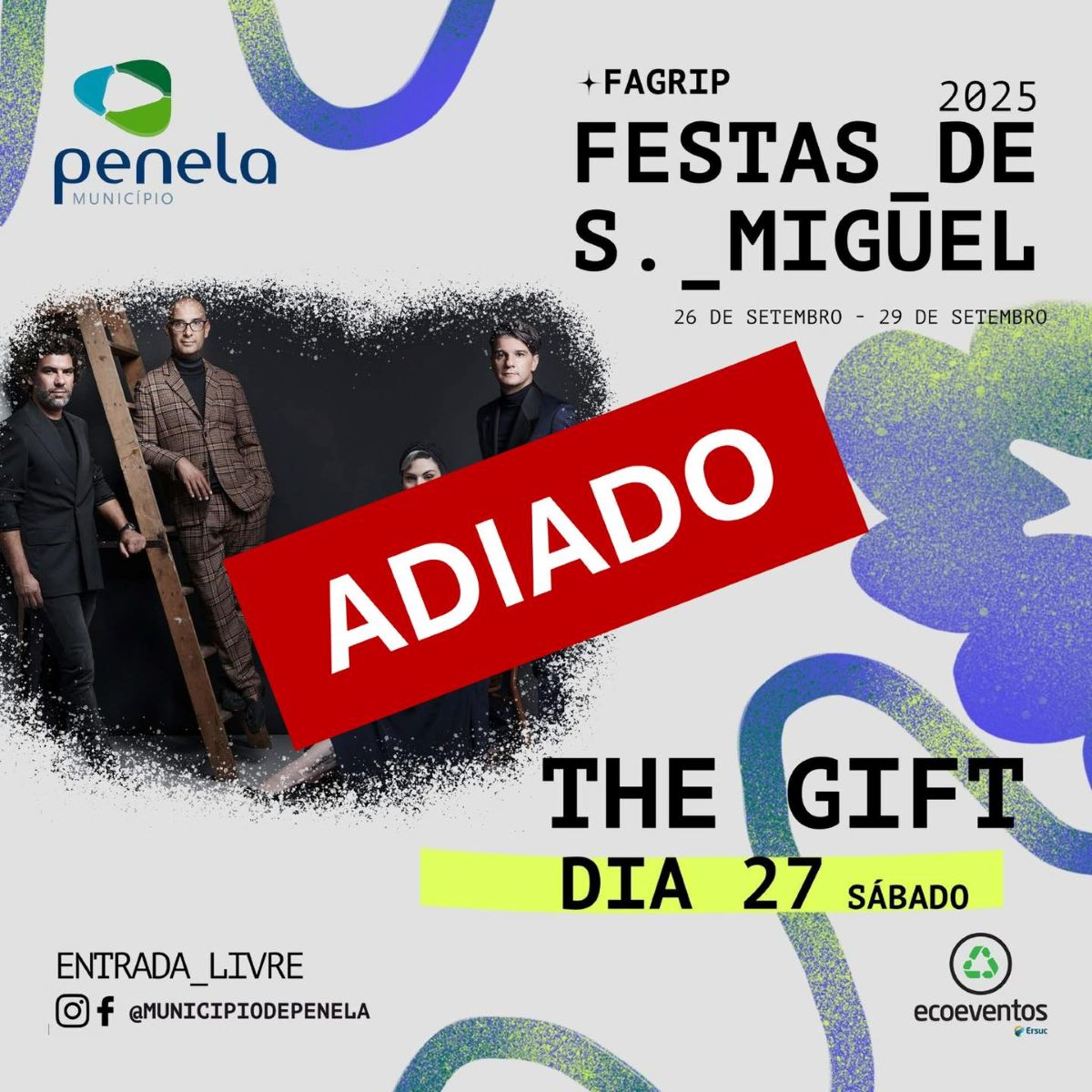 O concerto da banda The Gift, agendado para esta noite em Penela, no âmbito das Festas de São Miguel, FAGRIP…