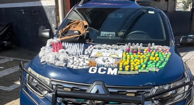 Agentes da Guarda Civil de Carapicuíba, por meio da equipe do canil, apreenderam uma grande quantidade de entorpecentes durante patrulhamento no Parque Santa Teresa. A equipe realizava rondas pela Avenida Eduardo Augusto de Mesquita, próximo à Aldeia de Carapicuíba, quando identificou um grupo de homens em um ponto suspeito. Ao perceberem a aproximação da viatura, os meliantes fugiram em direção a uma área de mata, dificultando a abordagem. Diante da situação e das características do local, os agentes utilizaram o cão farejador Atena, especializado na detecção de substâncias ilícitas. Durante as buscas, o animal indicou a presença de uma mochila escondida sob entulhos e mato. No interior da bolsa foram encontradas diversas porções de drogas, totalizando 263 unidades de maconha, 224 porções de cocaína e 314 pedras de crack. Todo o material foi apreendido e encaminhado ao 2º Distrito Policial de Carapicuíba, onde a ocorrência foi registrada e apresentada à autoridade de plantão.