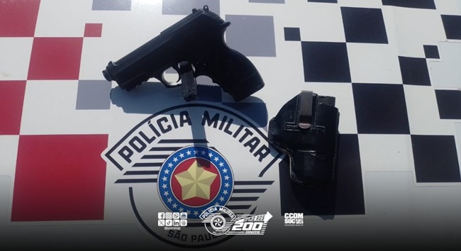 Na manhã de segunda-feira (18) um simulacro de pistola foi apreendido durante patrulhamento na área central de Vargem Grande Paulista.