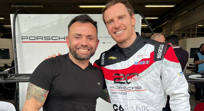 A temporada comemorativa dos 20 anos da Porsche Cup Brasil terminou em grande estilo, e com um toque hollywoodiano. Michael Fassbender (na foto com Paulo Caetano, do Cotia Agora), astro de X-Men, 12 Anos de Escravidão e Prometheus, trocou as câmeras pelo cockpit e participou da etapa 9 do campeonato ao lado do experiente piloto Max Wilson. A dupla competiu nos tradicionais 500 km de Endurance, disputados no icônico Autódromo de Interlagos, em São Paulo. Fassbender, que há alguns anos se aventura no automobilismo, viveu em Interlagos um dos momentos mais marcantes de sua trajetória nas pistas. A presença do ator atraiu olhares dentro e fora do paddock, tornando sua bateria uma das mais acompanhadas do fim de semana. A participação especial coroou o encerramento da temporada comemorativa, reforçando a vocação da Porsche Cup Brasil de unir competitividade, espetáculo e grandes histórias. Depois de milhares de quilômetros disputados nas corridas ao longo do ano, a Endurance 2025 conheceu seus campeões. Endurance CarreraMarçal Muller e Felipe Fraga confirmaram o favoritismo e levaram o título após uma grande final em Interlagos. Matheus Comparatto terminou como vice-campeão, mesmo tendo corrido com diferentes parceiros durante a temporada. Um deles, Matheus Ferreira, fechou o campeonato em terceiro. Endurance Carrera SportJosimar Junior e Sérgio Ramalho garantiram o troféu, enquanto Sebá Malucelli e Marcos Gomes ficaram com o segundo lugar. Endurance Carrera RookieA dupla Marco Pisani e Renan Guerra brilhou ao longo do ano e encerrou a temporada como campeã da categoria. Com casa cheia, disputa intensa e uma participação que atravessou o cinema e o automobilismo, a Porsche Cup Brasil encerrou sua temporada de duas décadas de história no melhor palco possível: Interlagos. Uma final digna de comemoração, e de blockbuster. Créditos das imagens: Pietro GuzziReportagem: Paulo Caetano – Jornalista e Piloto de Track Day
