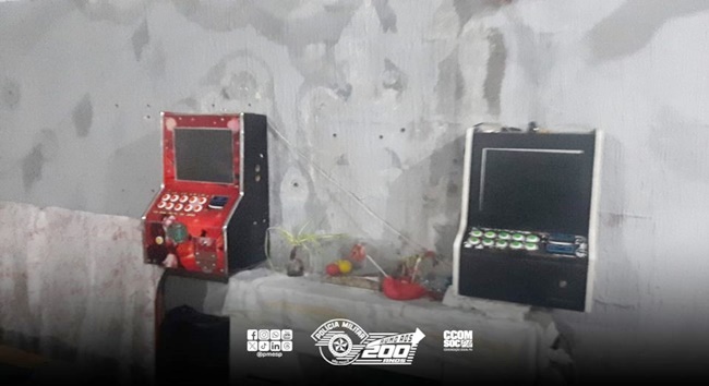 Na madrugada desta quinta-feira (21), uma ocorrência de perturbação do sossego público levou à apreensão de máquinas caça-níqueis e à