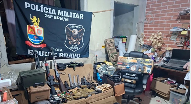 A Polícia Militar apreendeu diversas armas durante o atendimento de uma ocorrência de violência doméstica no Jardim São Daniel, em Carapicuíba. A ação aconteceu após uma denúncia envolvendo uma briga de casal em uma residência. Ao chegarem no local, os PMs chamaram os moradores e iniciaram uma averiguação na casa e durante a vistoria, localizaram uma grande quantidade de armamentos, como fuzis, granadas, outras armas e munições de diversos calibres. Todo o armamento foi apreendido e encaminhado para a delegacia, onde a ocorrência foi registrada e agora a polícia investiga a origem e qual seria o destino dessas armas.