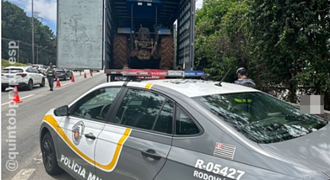 Na manhã de quarta-feira (18), PMs do 5º Batalhão de Polícia Rodoviária prenderam um criminoso na Rodovia Raposo Tavares, km 25, em Cotia. A equipe já tinha informações de um caminhão e tratores que haviam diso roubados em Piedade. Em patrulhamento pela rodovia, os policiais avistaram o caminhão e deram ordem de parada ao motorista. Dentro do baú estavam as duas máquinas agrícolas. O motorista foi preso em flagrante e os veículos levados para a Delegacia de Cotia. Os proprietários do caminhão e dos tratores foram acionados para reverem os seus bens.