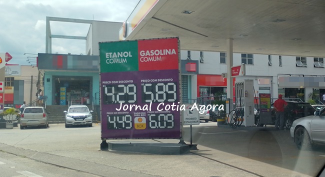 A gasolina também teve reajuste, pulando em média de R$ 5,87 para R$ 6,09 e de R$ 6,09 para R$ 6,19. Mas, ainda há postos que na venda por aplicativo dão desconto de R$ 0,20 por litro. Em postos da Granja Viana, já há etanol por R$ 4,69 e gasolina por R$ 7,27.