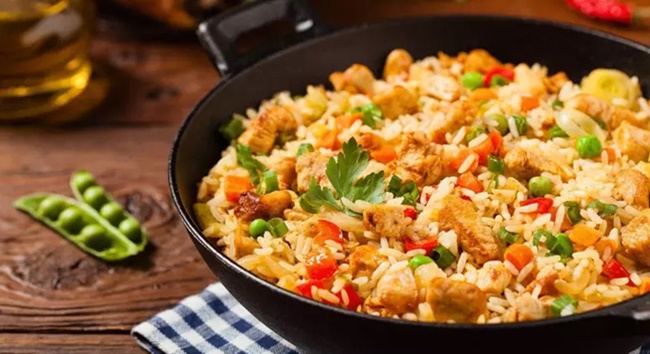 Ingredientes:300 gramas de arroz cozido2 ovos200 gramas de frango picado1 cenoura ralada100 gramas de ervilha20 gramas de alho picado50 ml de shoyu20 ml de óleo para refogar Modo de preparo Refogue o alho e o frangoComece refogando o alho picado em uma panela com um fio de óleo. Deixe o alho dourar levemente, liberando seu aroma. Em seguida, adicione o frango picado e cozinhe até que fique bem dourado. Esse passo é essencial para garantir que o frango absorva os temperos e o arroz ganhe sabor.Adicione os legumesApós o frango estar bem dourado, adicione a cenoura ralada e as ervilhas. Continue refogando até que os legumes fiquem macios. Esse processo ajuda a liberar os sabores e a garantir que os legumes não percam a textura.Incorpore o arrozAgora, adicione o arroz já cozido à panela. Misture bem, para que o arroz fique bem incorporado com os temperos e os legumes. Deixe fritar por alguns minutos, mexendo de vez em quando, para garantir que os sabores se misturem bem.Acrescente os ovos e o molho shoyuEm uma parte da panela, faça um espaço e adicione os ovos. Mexa os ovos até que fiquem mexidos e completamente cozidos. Após isso, adicione o molho shoyu, mexa bem e deixe que todos os ingredientes se misturem.Sirva e aproveiteAgora, o seu arroz frito chinês está pronto! Sirva em seguida, aproveitando o sabor e a textura que essa receita deliciosa proporciona. Do Guia da Cozinhahttps://www.terra.com.br/vida-e-estilo/degusta/receitas/para-variar-nas-refeicoes-inove-com-a-receita-de-arroz-frito-chines,768e72ee7707ae2131b4bdd72218e324yrw4zil9.html?utm_source=clipboard