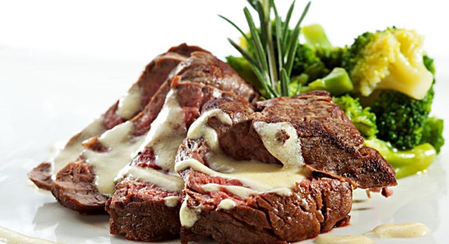 Lembre-se: quanto mais tempo a carne ficar no fogo, mais passada ela ficará. E quanto mais passada, menos macia e suculenta. Com a carne finalizada, deixe-a descansar enquanto você esquenta o molho novamente. Sirva a carne com legumes cozidos no vapor e o molho gorgonzola.