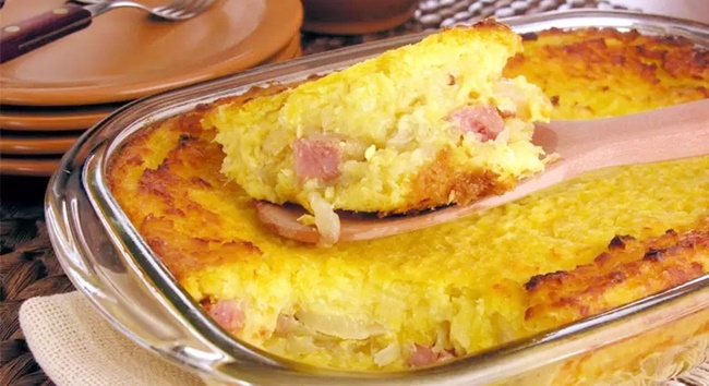 Ingredientes:10 espigas de milho-verde1 xícara (chá) de leite1 colher (chá) de açúcar1 colher (sopa) de manteiga1 colher (chá) de sal2 colheres (sopa) de óleo2 cebolas fatiadas2 gomos de linguiça calabresa sem pele em cubos1 xícara (chá) queijo mussarela ralado Modo de preparo:Retire os grãos de milho da espiga com uma faca afiada.Bata no liquidificador com o leite, o açúcar, a manteiga e o sal até ficar homogêneo e reserve.Enquanto isso, aqueça uma panela com o óleo, em fogo médio, e frite a cebola e a calabresa por 5 minutos.Despeje metade do creme de milho em uma travessa retangular média, espalhe o refogado, o queijo e então cubra com o creme restante.Leve ao forno médio, preaquecido, por 40 minutos ou até dourar. Retire, deixe amornar e sirva em seguida. Do Guia da Cozinhahttps://www.terra.com.br/vida-e-estilo/degusta/receitas/pamonha-salgada-de-travessa-prato-saboroso-para-toda-a-familia,1e4a394f8ab54b277cc809176c182d0dj9j8uz6n.html?utm_source=clipboard