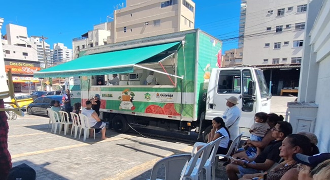 A Prefeitura de Guarujá recebeu, na última quarta-feira (26), três representantes da Prefeitura de Cotia, interessados em implantar na cidade o modelo da Cozinha Didática Itinerante ‘Caminhão Sabor e Renda’. A comitiva foi formada pelo chefe de gabinete de Cotia, Luciano Freitas, e as assistentes sociais, Ivete Mendes e Patrícia Ueoka. Eles foram recebidos pelo vice-prefeito, além do diretor e da coordenadora da Segan que apresentaram o conjunto de políticas públicas de Segurança Alimentar e Nutricional desenvolvidas, como os restaurantes populares, o programa estadual VivaLeite, a Feira da Cidadania e, especialmente, o projeto Caminhão Sabor e Renda, que despertou o interesse dos visitantes. O que é o Caminhão Sabor e Renda O Caminhão Sabor e Renda funciona como uma cozinha totalmente equipada dentro de um caminhão-baú e tem como finalidade promover educação alimentar e nutricional por meio de oficinas de culinária. As atividades incluem aulas teóricas e práticas, com a elaboração de receitas saudáveis e acessíveis, utilizando alimentos in natura ou minimamente processados e priorizando o aproveitamento integral, como cascas, talos e folhas. Além das oficinas, o projeto oferece cursos de Educação Alimentar e Nutricional nas áreas de boas práticas de manipulação de alimentos, aproveitamento total dos ingredientes e orientação baseada no Guia Alimentar para a População Brasileira. Ao final das aulas, os participantes degustam as preparações para conhecer sabor, textura e possíveis formas de incorporar as receitas ao dia a dia. Cada aluno também recebe um folder com receitas e orientações trabalhadas em aula.