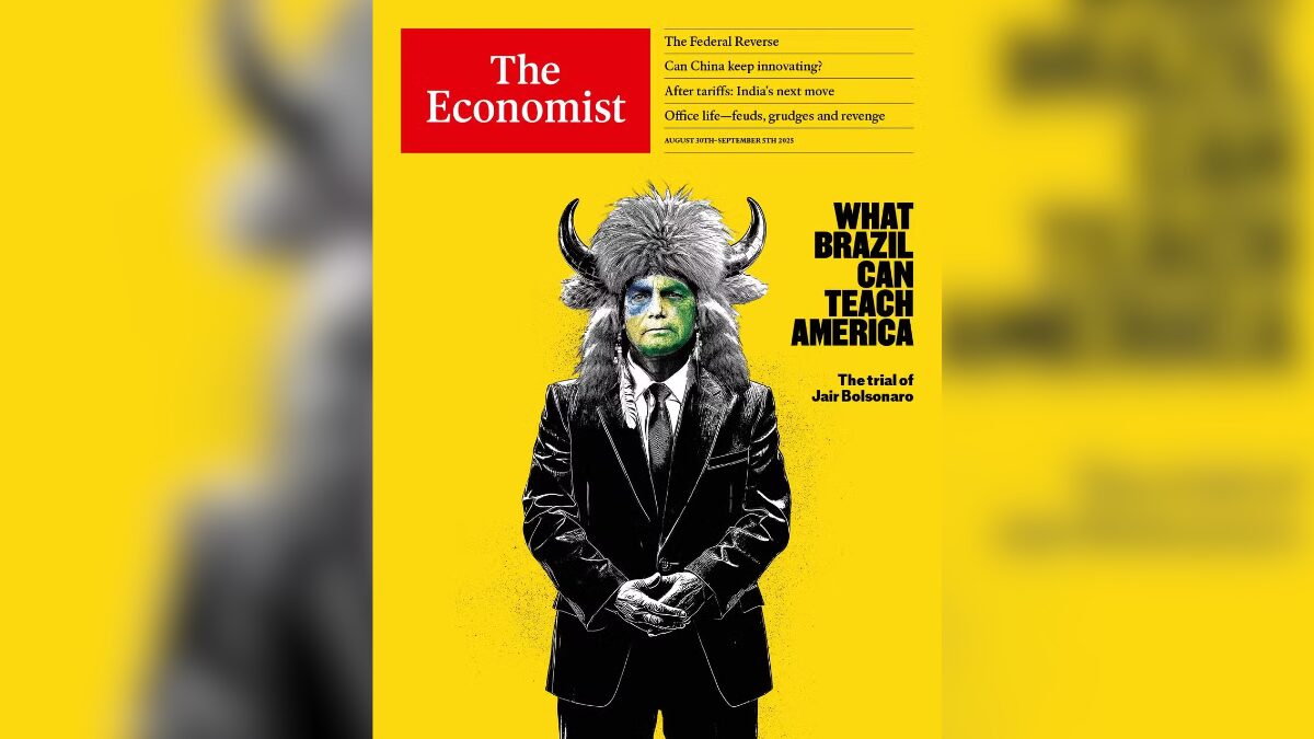 A revista britânica “The Economist” desta semana trouxe na capa o ex-presidente do Brasil, Jair Bolsonaro. A publicação destaca o julgamento que acontece a partir da próxima terça-feira (2), no qual ele é réu, e classifica o processo como “uma lição de democracia”. As informações são do g1. Continua depois da publicidade “O Brasil oferece