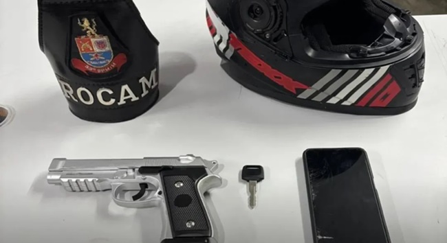 Policiais militares da ROCAM da 3ª Cia do 33º Batalhão entraram em ação na captura de mais um criminoso na cidade. Os PMs avistaram uma motocicleta sem placa com dois homens circulando pela região central de Cotia. A ordem de parada foi dada e ignorada pelos ocupantes da moto. Começou aí uma perseguição até que o motoqueiro parou e jogou a moto no chão. Ele conseguiu fugir, mas o comparsa acabou detido em flagrante, apesar de ter resistido à prisão. Com ele havia um simulacro de arma de fogo e os policiais ainda constataram que a moto era furtada. O bandido acabou levado para a Delegacia de Cotia, onde foi autuado por receptação e resistência à prisão. A moto foi devolvida ao proprietário.