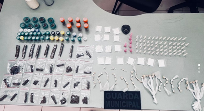 Já no Marco Polo, na Praça Municipal (semana passada), agentes visualizaram um rapaz em atitude suspeita retirando uma sacola de um cesto de lixo. Ao notar a aproximação da viatura, o bandido fugiu, abandonando o material, que foi apreendido, contendo 68 pinos de cocaína, 16 papelotes de cocaína, 60 pedras de crack, 37 papelotes de maconha e 50 tubetes de maconha modificada.